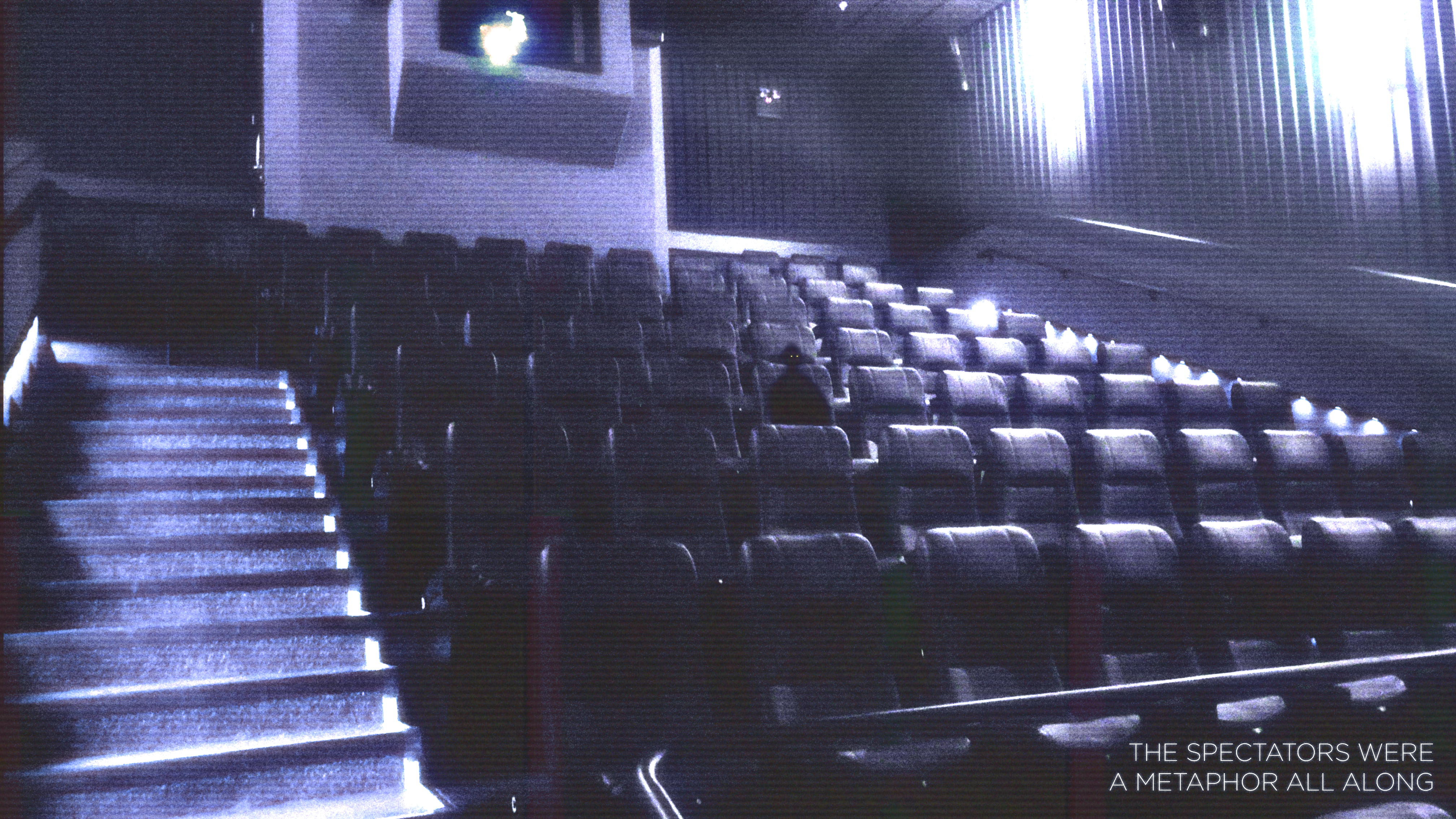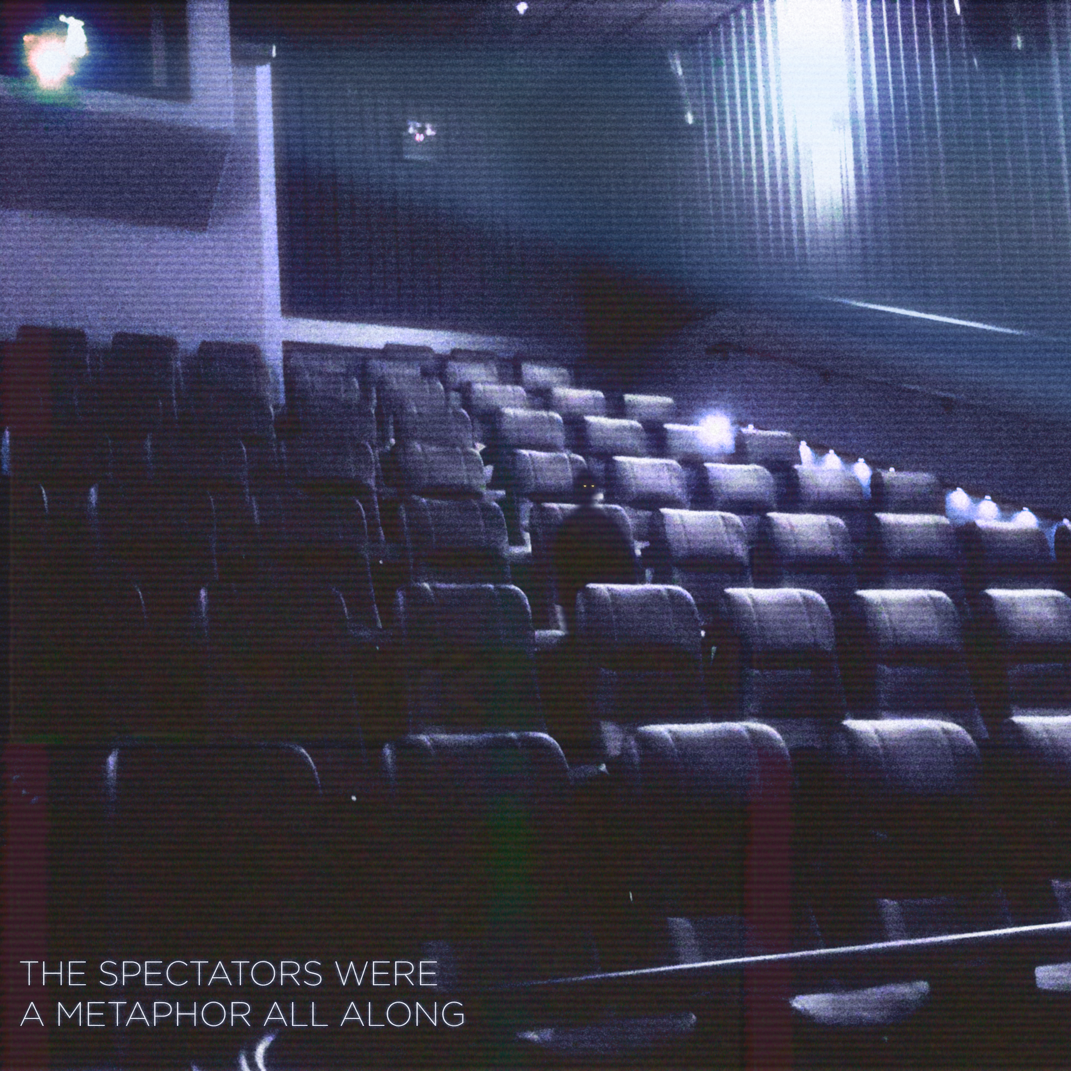 «The Spectators Were a Metaphor All Along» – Una composición creada con una imagen que tomé de una sala de cine vacía a la que quise agregarle un espectador. También hubo cambios en la iluminación y la adición de efectos que lo hacen sentir como una imagen que debió mantenerse oculta.